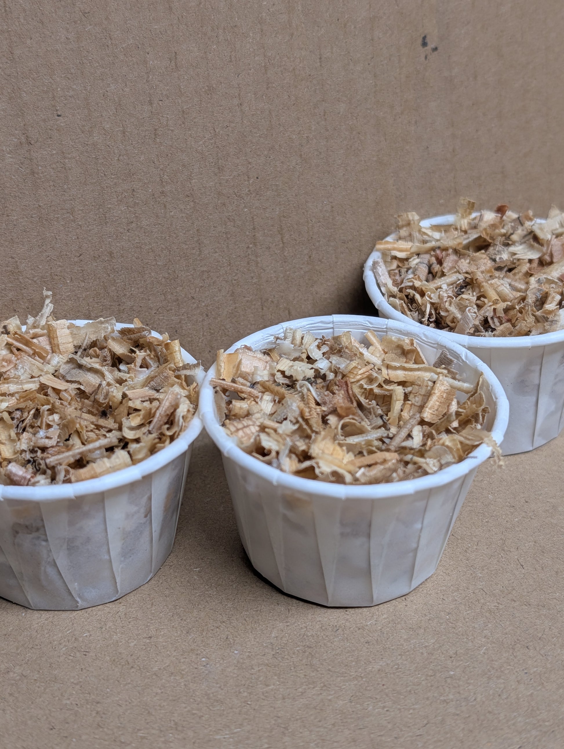 Made using only real wood shavings and wax in a small 2 oz. paper cup - no chemicals added, just wood shavings from Farmer Vic's wood shop and wax.
