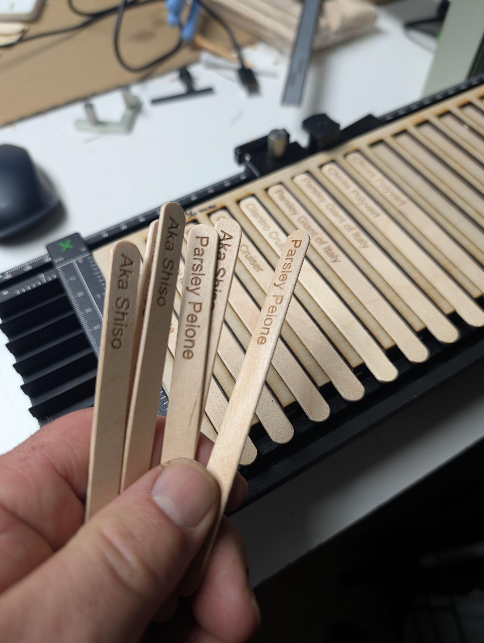 Now I laser engrave wooden craft sticks - no more faded handwriting I can't read, no more plastic in my beds and I can re-use these for several years - then I just throw then into the compost ...